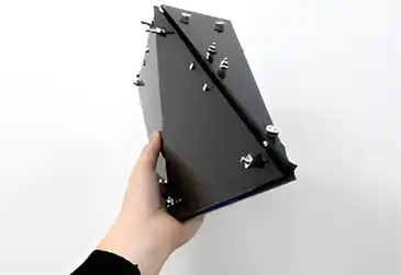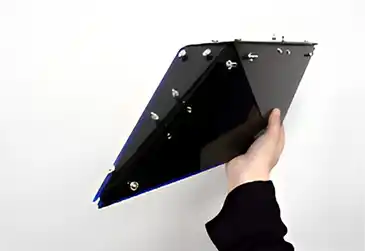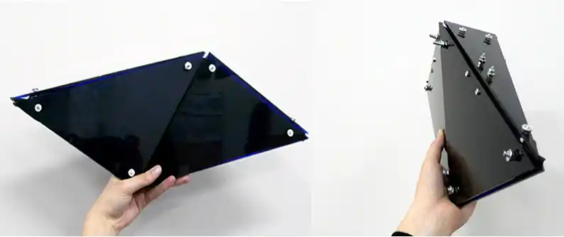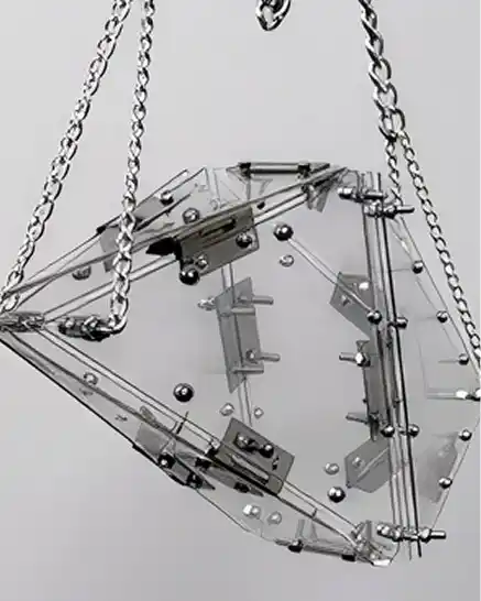 Methacrylate bags for the winter collection Kalos, 2012. All joints made with screws and hinges, metacrilate cut with laser cut.