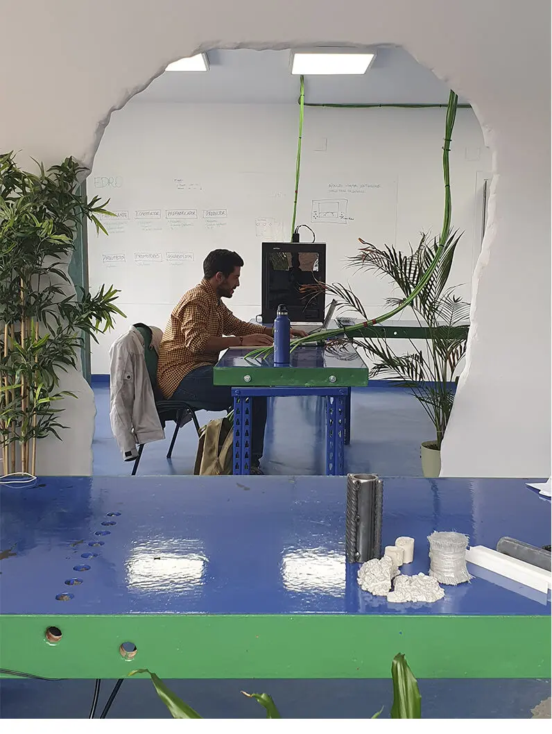 resources and increased waste. Understanding the reasons behind abandonment helps us appreciate the importance of upcycling and recycling in architecture. The refurbishment of this office is carried out for a startup that works with bolton construction systems to implement the circular economy in the construction sector, eliminating demolition. The office space is located inside a warehouse where its R&D tests are carried out.