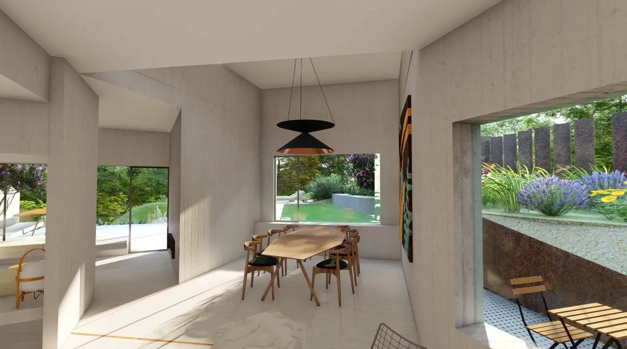 Located on a sloping piece of land on the Cerro de la Avutarda, Casa Oliva is designed to adapt to the topography of the place, and to the requirements of the clients "a house to host many events, but with quiet corners to relax."