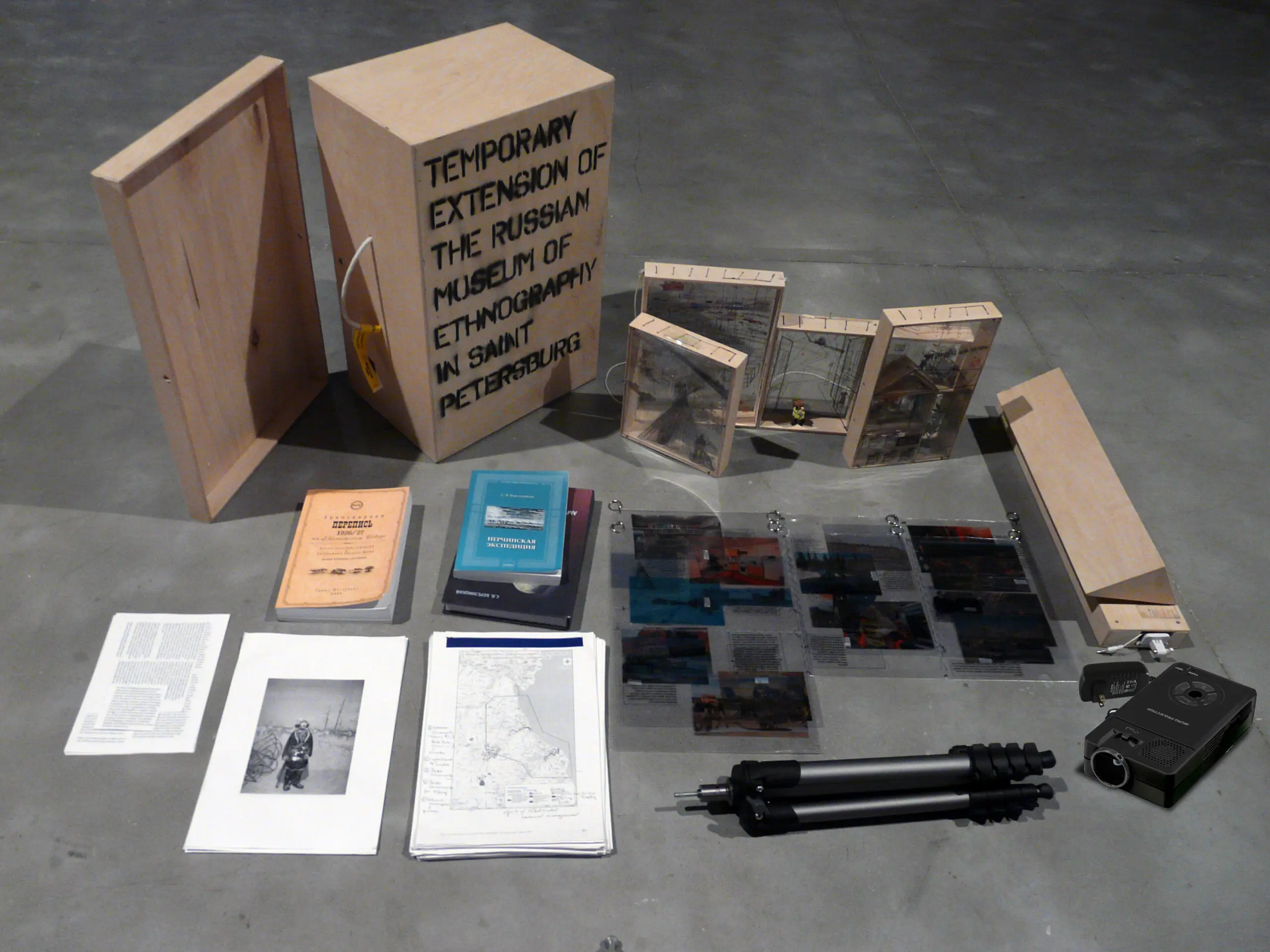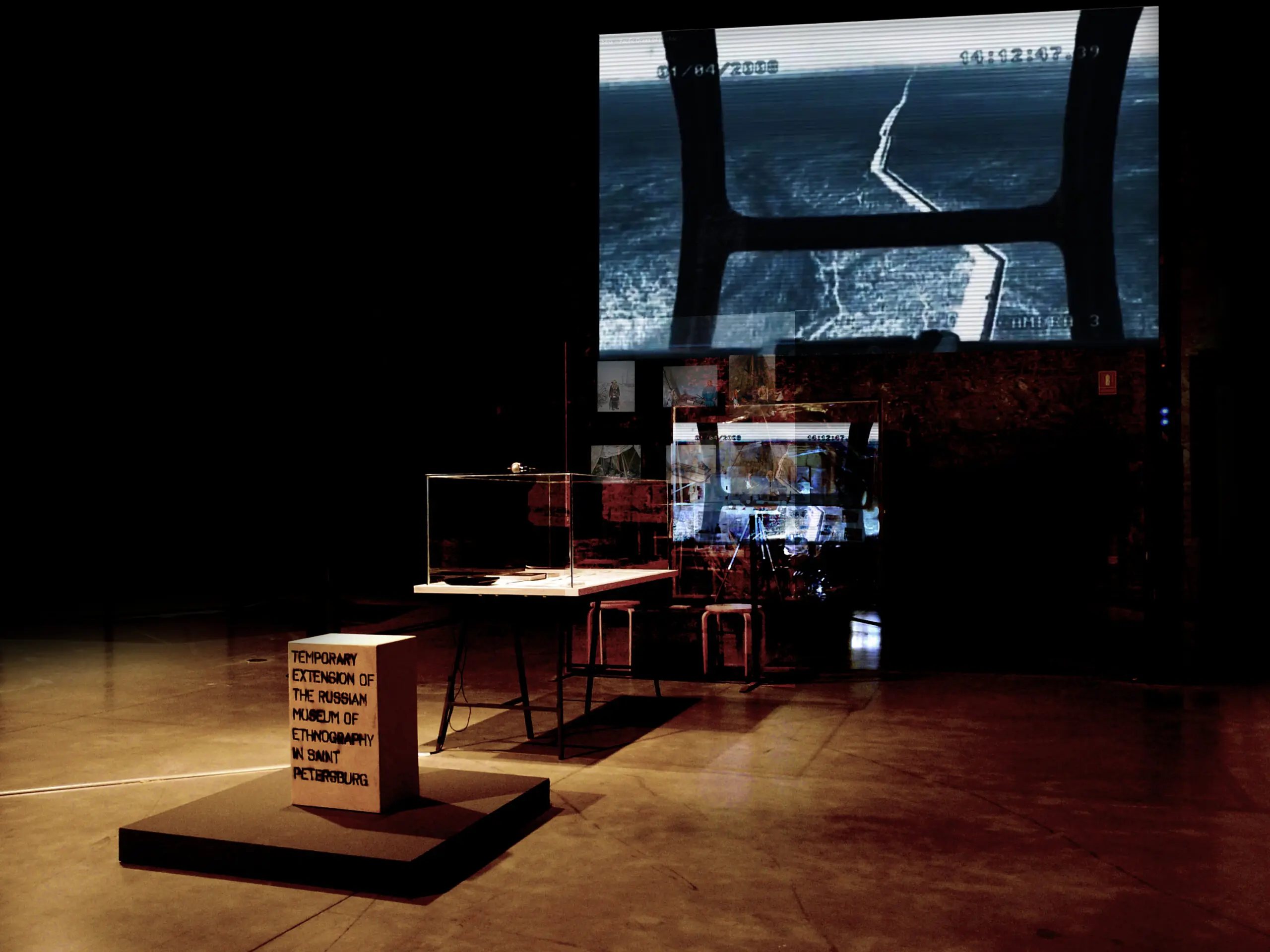 The installation explores the divergence between today’s globalised political and economical practices and the construction of national /local/personal identities in an increasingly homogenised world through a temporary extention of the exhibition on nomads in Siberia displayed at the Russian Museum of Ethnography in St. Petersburg.